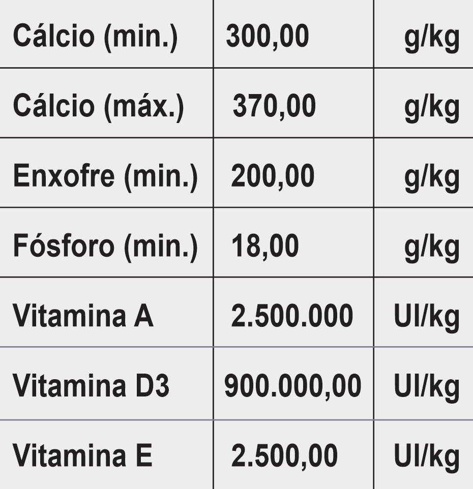 ou mineral. Na ração, misturar 1 kg em 100 kg e